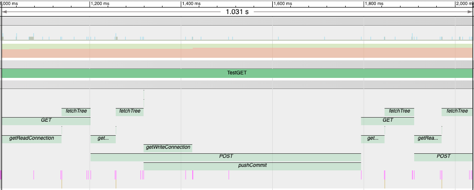 What’s really interesting is that the first calls to getReadConnection and getWriteConnection took about twice as long as subsequent ones. This got me wondering if I could “warm up” the session to make all these calls faster. So I added a throwaway call to set up both the read and write connections when establishing the initial session (which wasn’t part of the trace).