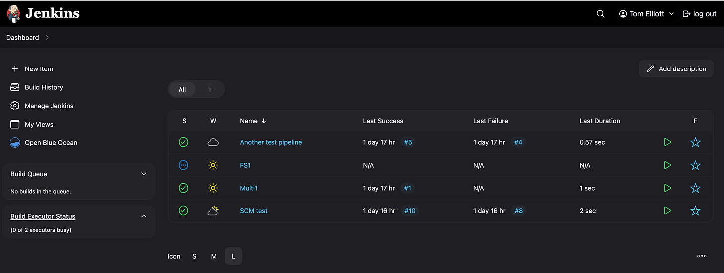 Now there are a ton of options to run Jenkins, often with pre-canned scripts or managed packages. So for running locally, Docker seemed the best option for me to get started. The instructions had a little faffing with DinD and building your own image, but only took a few minutes to get running.